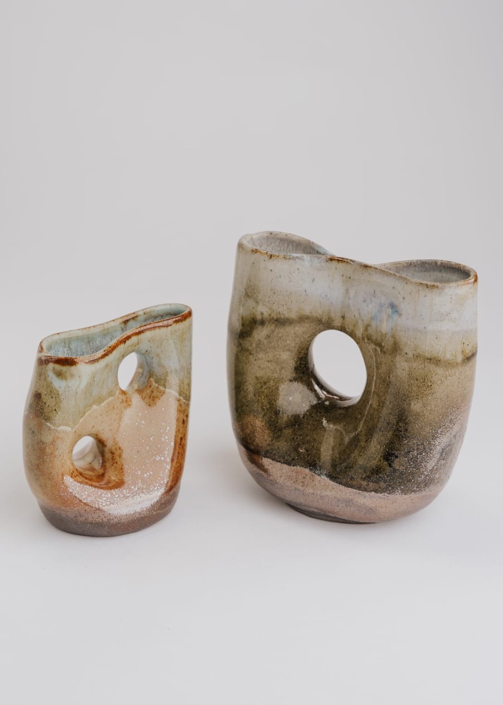 These pieces explore different glaze combinations and were inspired by natural forms and textures.