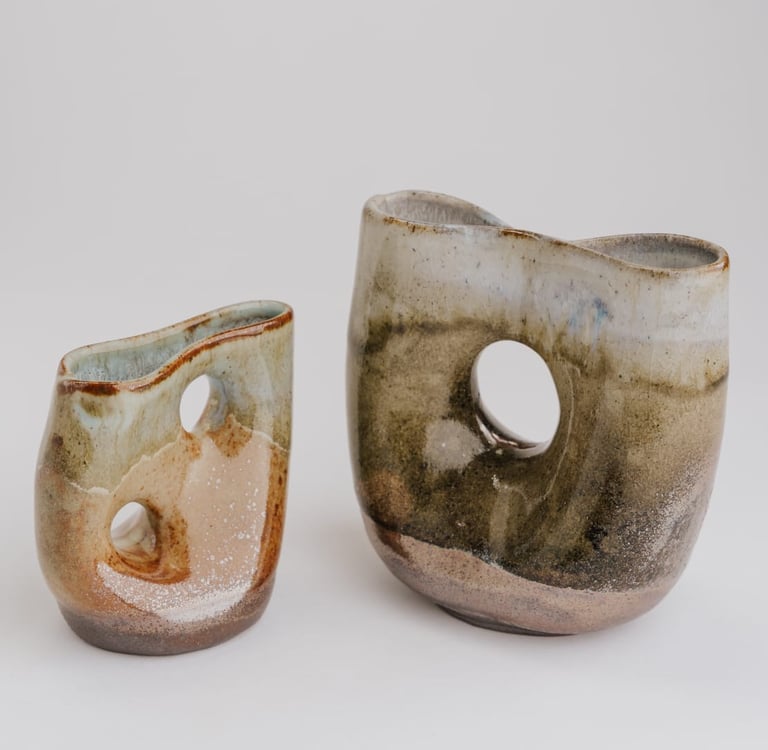 The creative process for these pieces relied on a balance between technical control and the unpredictable nature of the firing environment. This collection represents a series of experiments in material and technique that I categorize as rooted chaos.